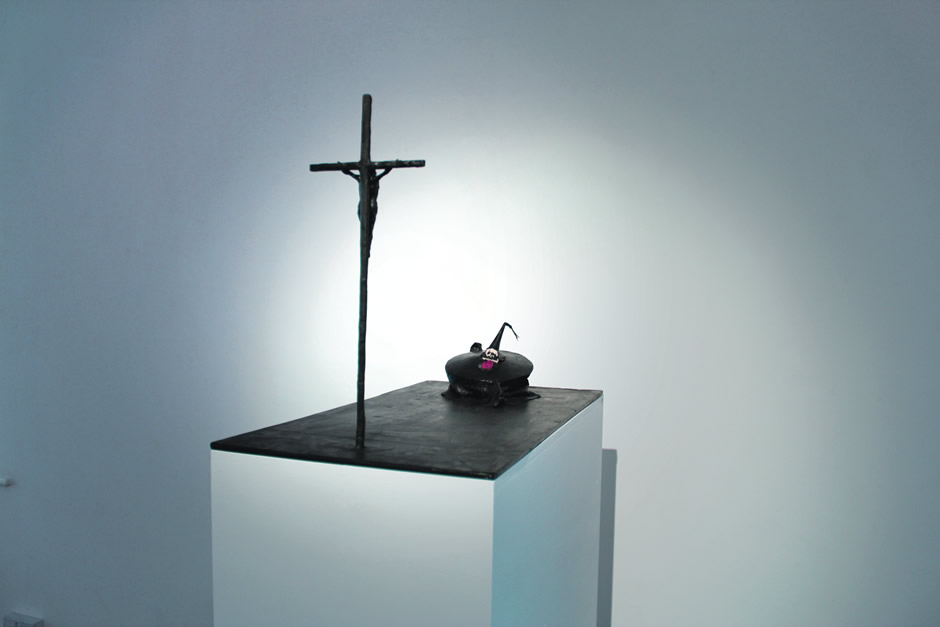 All rituals have one key component – repetition. It’s through repetition that ritual does its work. Each ritual, old or new, has its established form, place and date in our lives: the baptism of children, the ringing of bells, singing a sacred song, passing round the wine or a joint, placing the mobile phone always just so on the table, lovers undressing, updating Facebook, pouring out the tea, laying out the dead. All these rituals take the everyday and load it with an added experience of being human, being individuals, yet together. For Tim Shaw ritual goes further. As for the ancients, for Shaw ritual is a door into another world. He has long been fascinated by human beings’ need to dissolve normality, leave reason behind and reach deeper into our selves. According to Carl Jung, we can only be complete human beings if we reconcile the workings of our conscious and unconscious minds. Tim Shaw instinctively recognises this as a human need. For this reason, ritualistic figures are recurring motifs in his work.