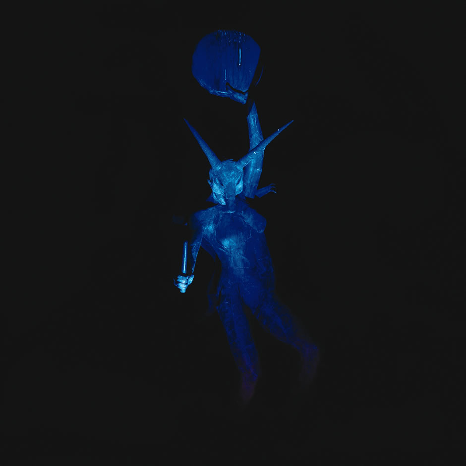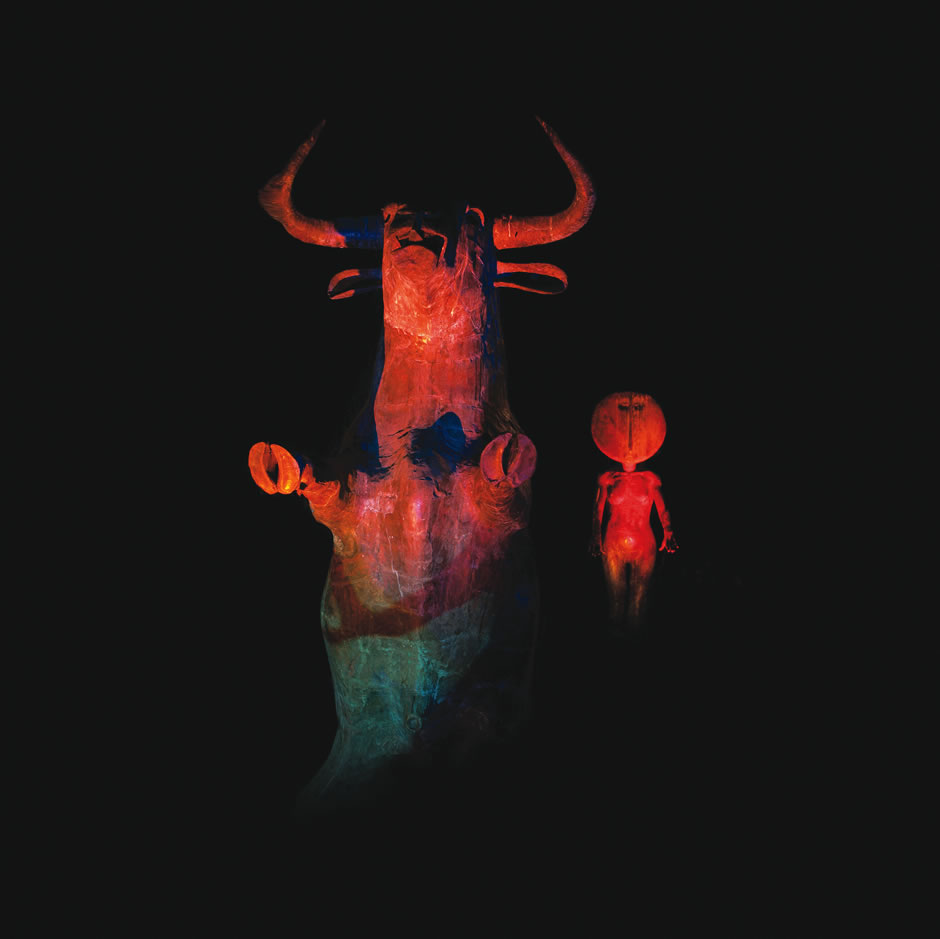 The bull figure of Dionysus, a symbol of untamed nature, forms the primary focus of the scene. Around him a sacrificial rite is enacted, the Maenads dance and writhe through the vines, beating drums and sounding trumpets. Inspiration is drawn Euripedes play The Bacchae.